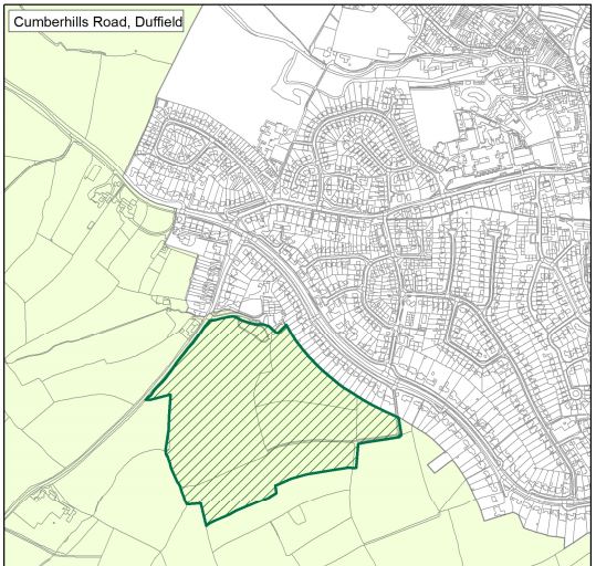 The two areas of Duffield Green Belt initially allocated for building were on Cumberhills Road and Wirksworth Road (a third, smaller site on Hazelwood Road was later added). A dozen other sites were also designated across the Borough.